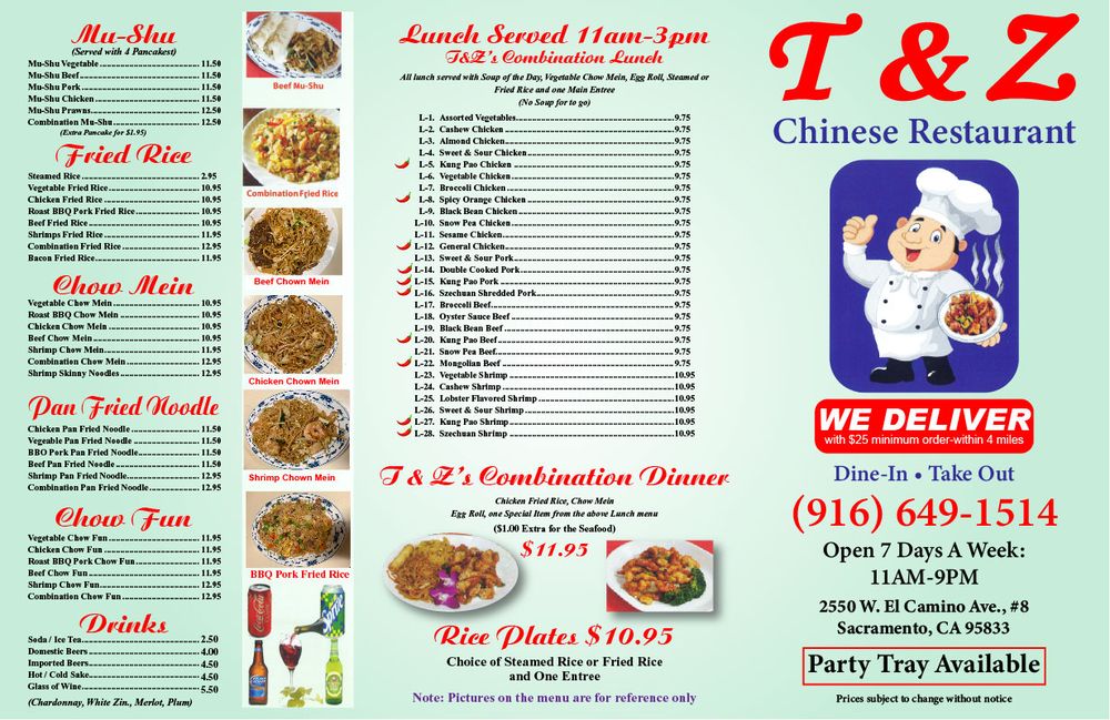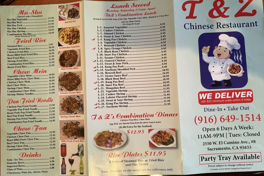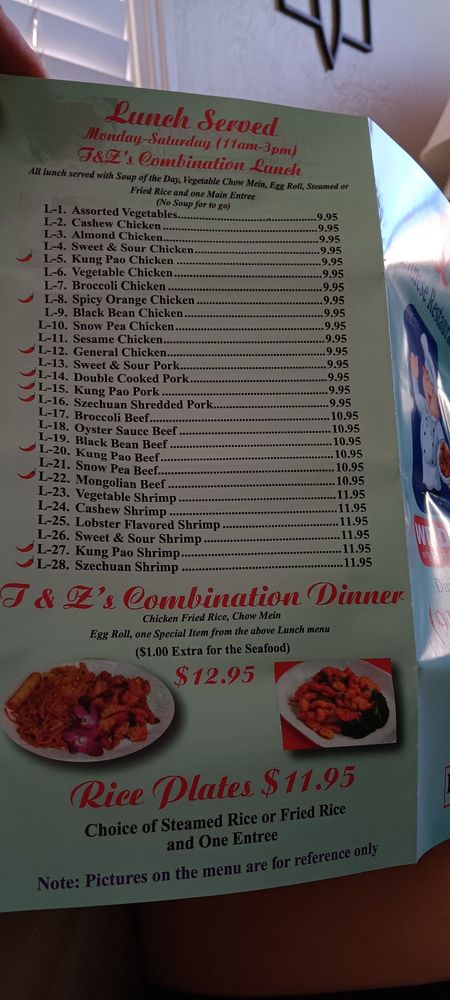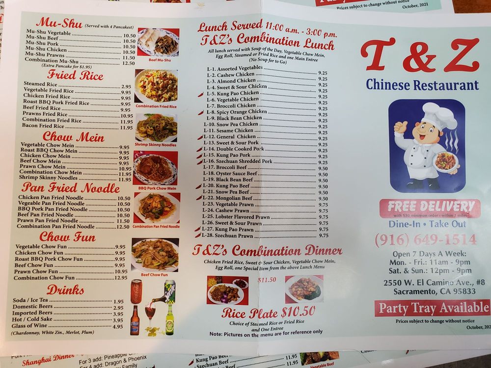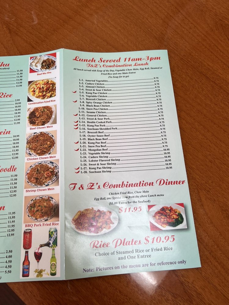 T & Z Chinese Menu (Update 2025)